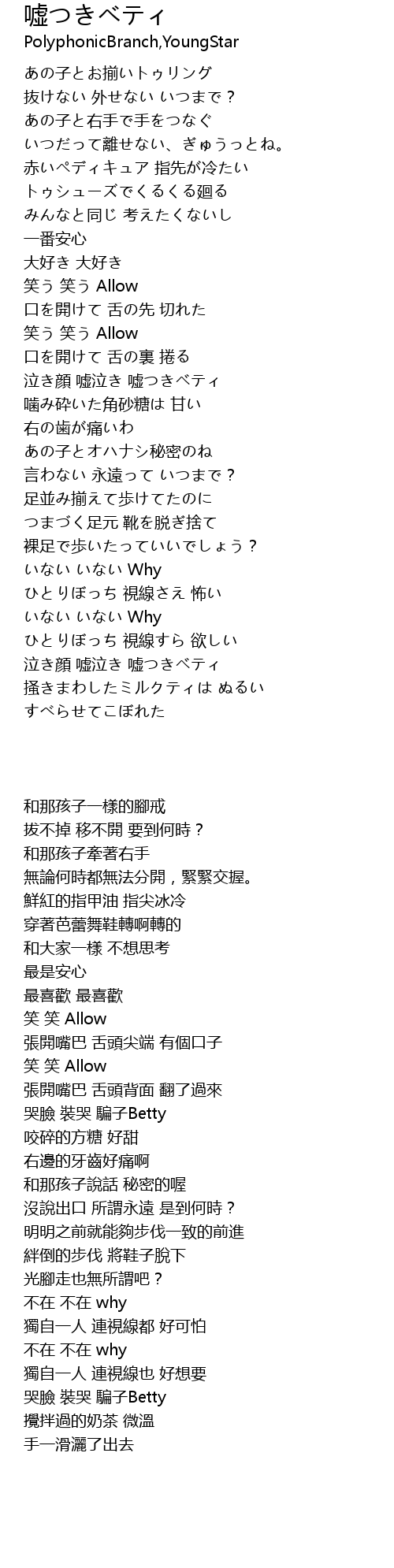 | [02:17.61] | 泣き顔 嘘泣き 嘘つきベティ |