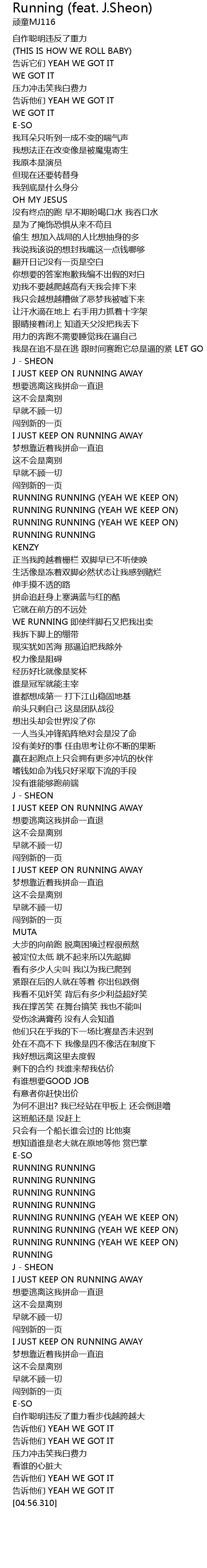 | [01:40.840] | RUNNING RUNNING (YEAH WE KEEP ON) |