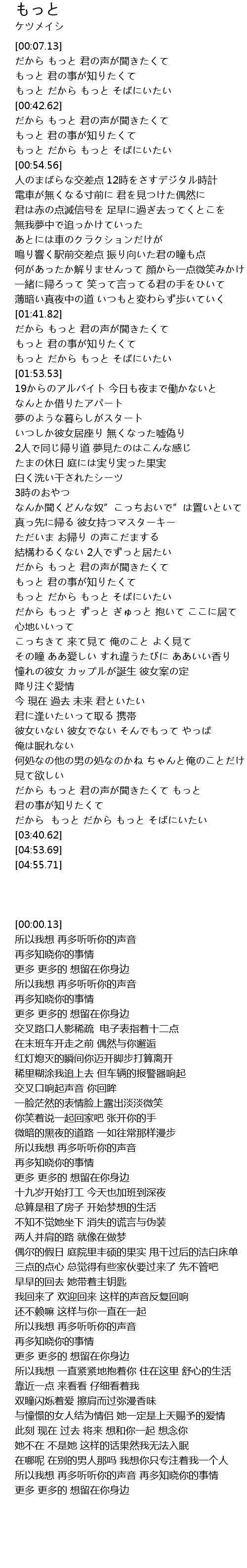 | [00:49.17] | もっと だから もっと そばにいたい |