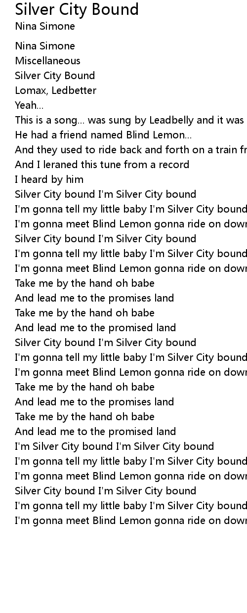 Silver City bound I'm Silver City bound |