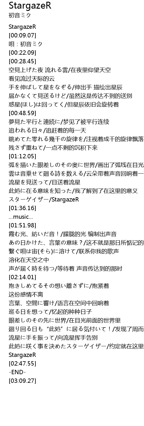 | [00:17.12] | 唄:初音ミク |