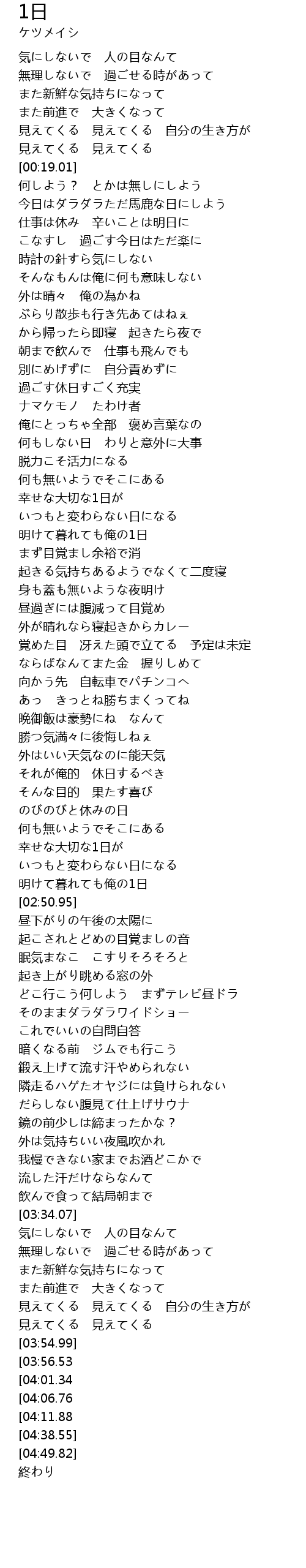 | [01:42.31] | 明けて暮れても俺の1日 |