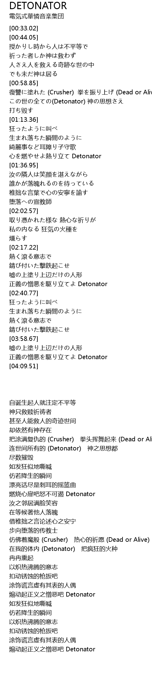 | [02:36.61] | 正義の憎悪を駆り立てよ Detonator |