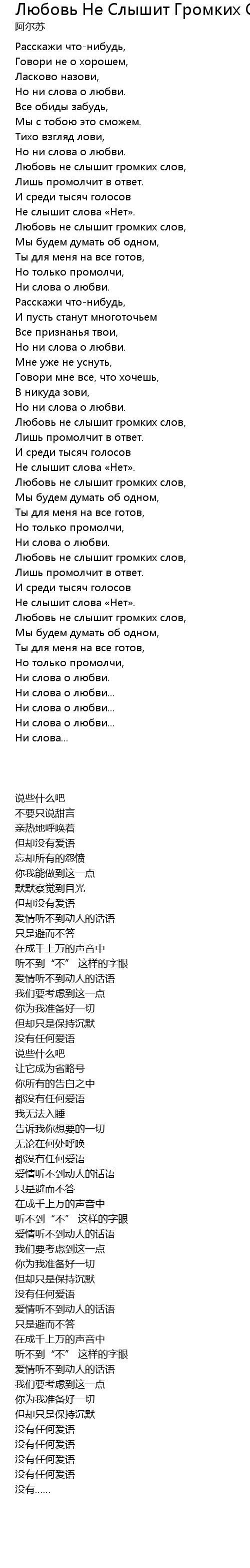 Любовь не слышит громких слов, |