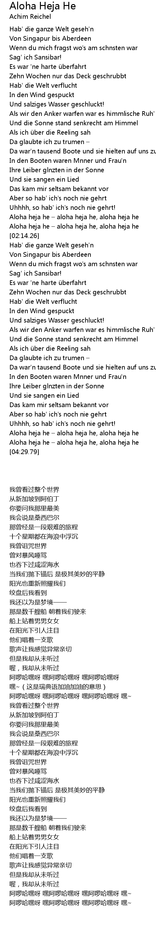 | [04:23.37] | Aloha heja he – aloha heja he, aloha heja he |