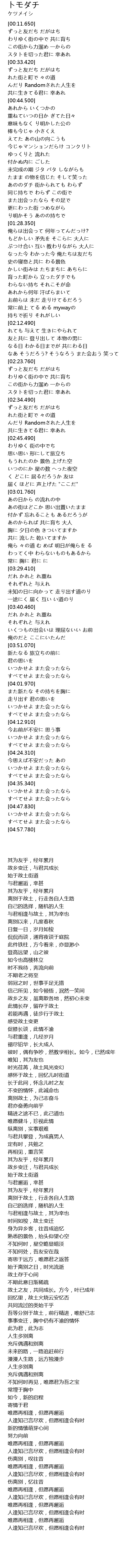 | [01:09.860] | たまま の物を信じた そして笑った |