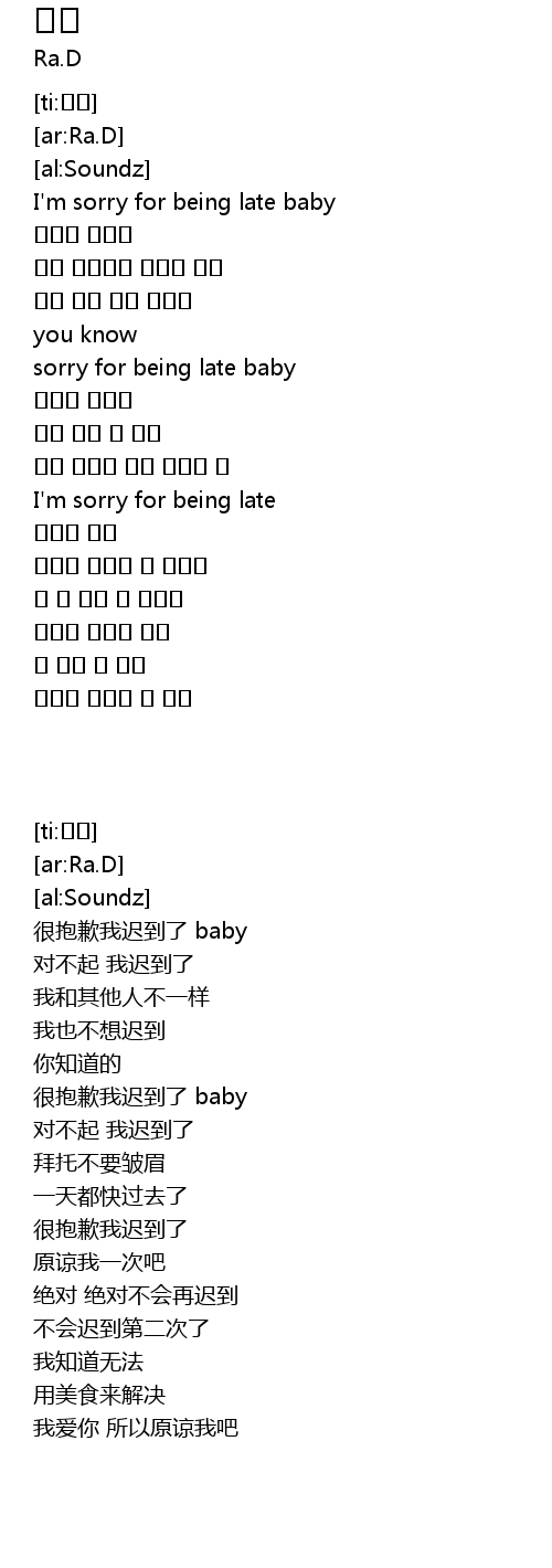 | [00:10.97] | I'm sorry for being late baby |
