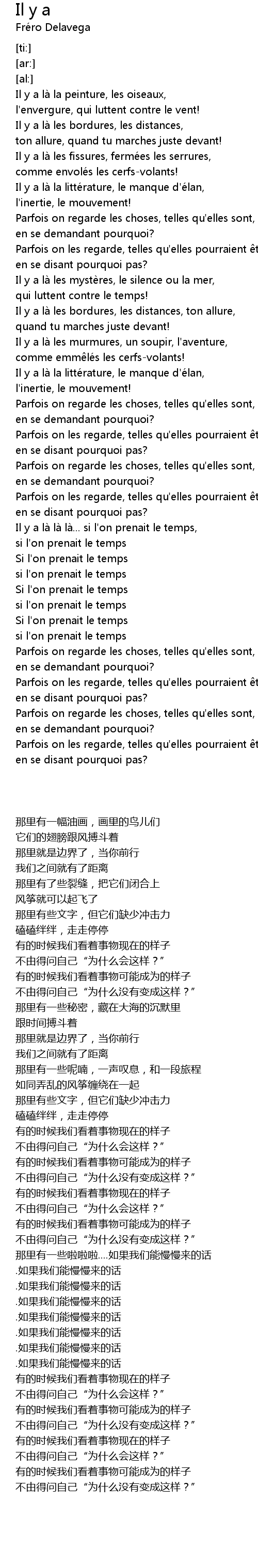 | [01:54.80] | Il y a là là là... si l' on prenait le temps, |