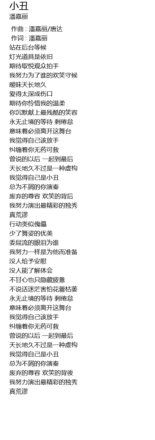 | [00:01.00] | 作词 : 潘嘉丽 |