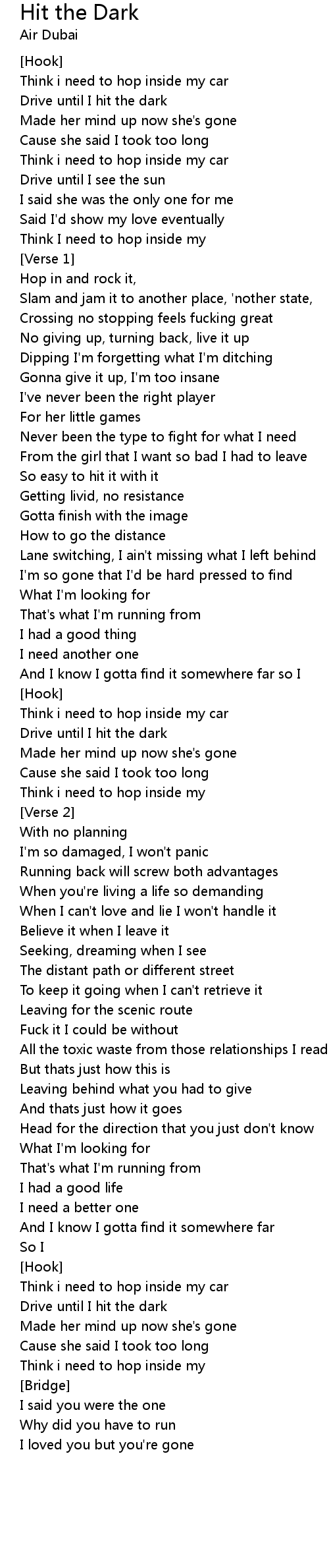 | Drive until I hit the dark | |