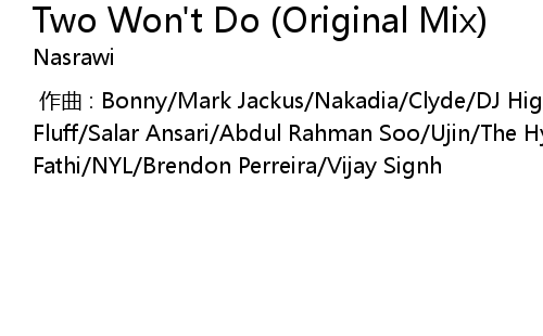 | [00:00.000] | 作曲 : Bonny/Mark Jackus/Nakadia/Clyde/DJ Hightech/Jeneral Kai/Mr Fluff/Salar Ansari/Abdul Rahman Soo/Ujin/The Hypercubes/Abood Nasrawi/Mia L/Azim Fathi/NYL/Brendon Perreira/Vijay Signh |