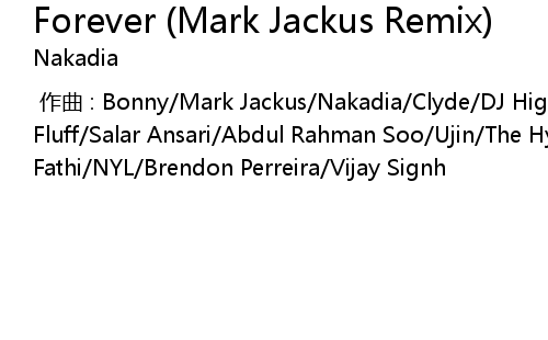| [00:00.000] | 作曲 : Bonny/Mark Jackus/Nakadia/Clyde/DJ Hightech/Jeneral Kai/Mr Fluff/Salar Ansari/Abdul Rahman Soo/Ujin/The Hypercubes/Abood Nasrawi/Mia L/Azim Fathi/NYL/Brendon Perreira/Vijay Signh |