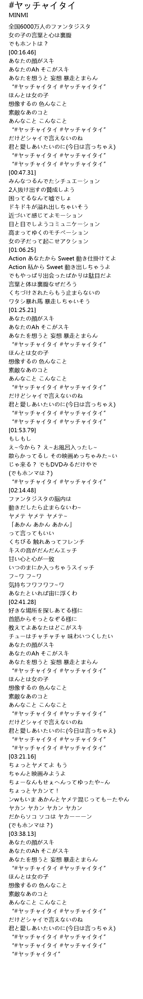 | [01:51.62] | “#ヤッチャイタイ #ヤッチャイタイ” |