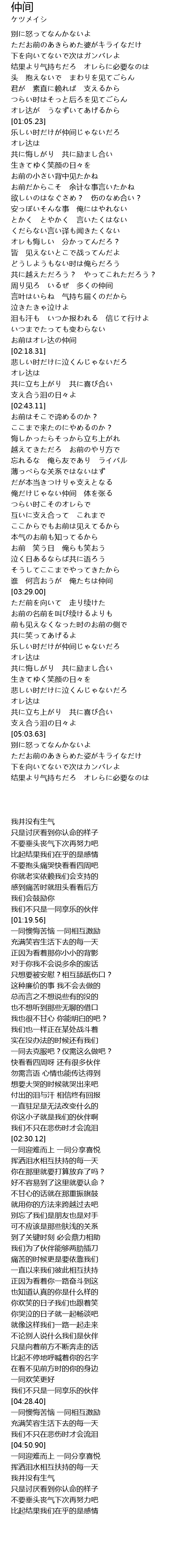 | [03:26.83] | 谁 何言おうが 俺たちは仲间 |