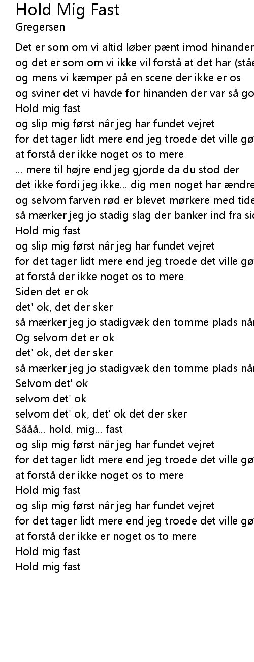 | så mærker jeg jo stadigvæk den tomme plads når du ikke er her mere | |