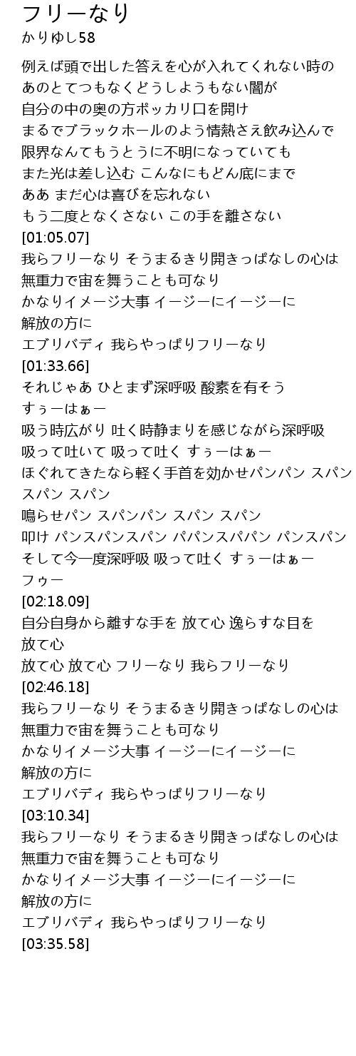 | [03:01.59] | エブリバディ 我らやっぱりフリーなり |