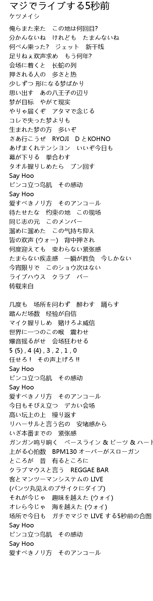 | 皆の欢声 (ウォー) 背中押され | |