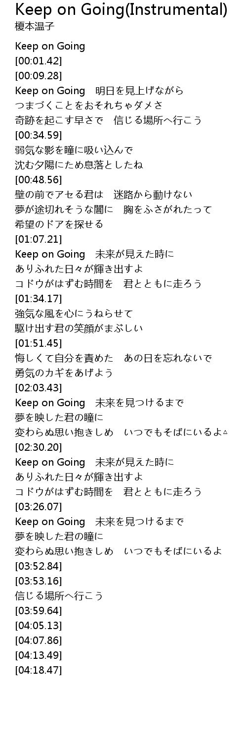 | [00:00.00] | Keep on Going |