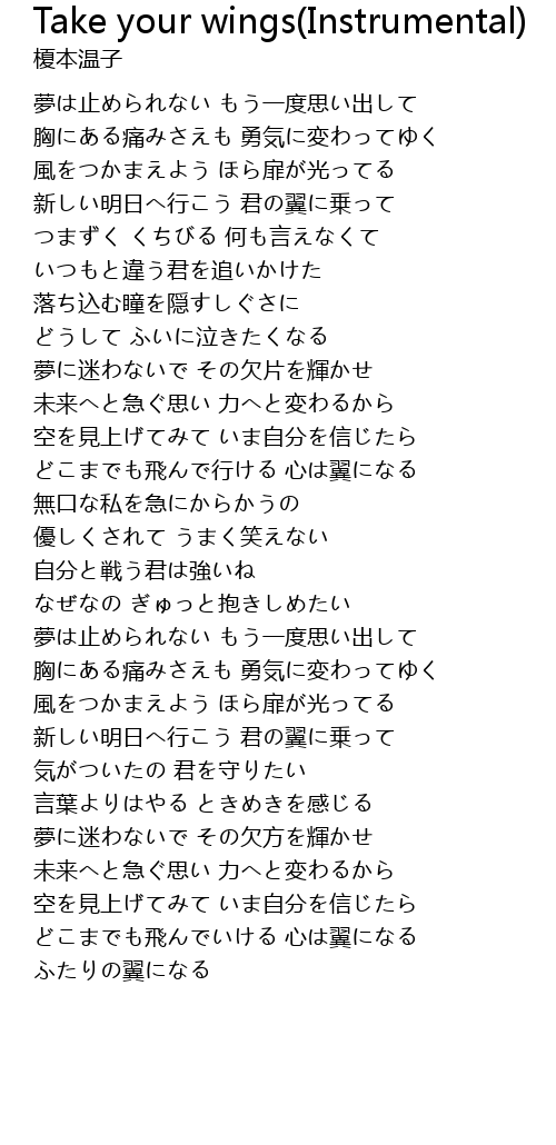 | Song | Take your wings(Instrumental) |