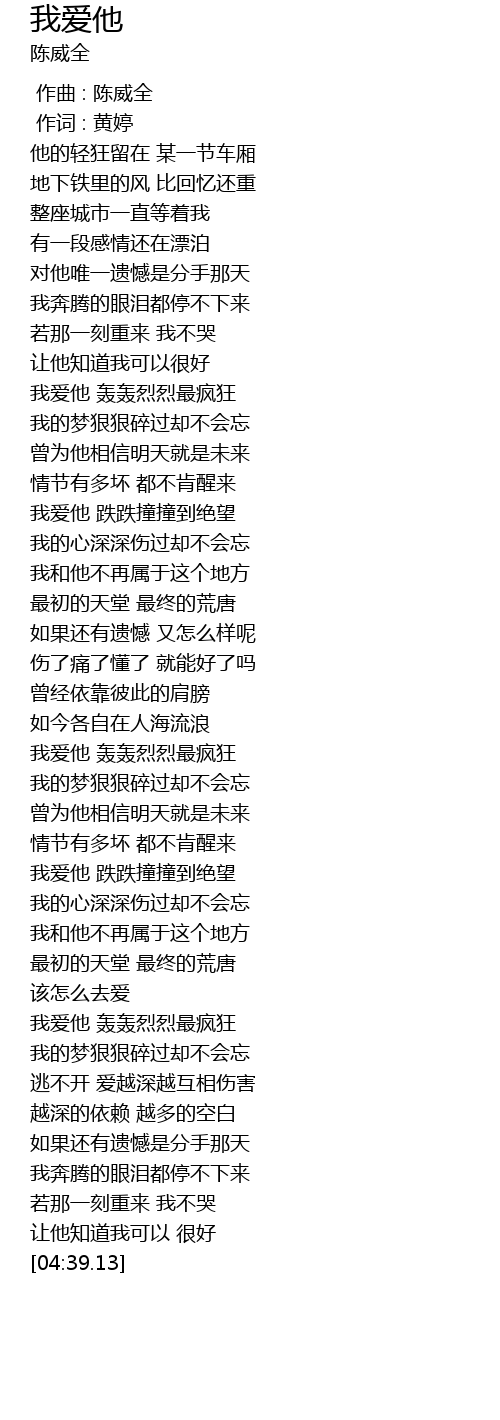 | [03:41.67] | 我爱他 轰轰烈烈最疯狂 |