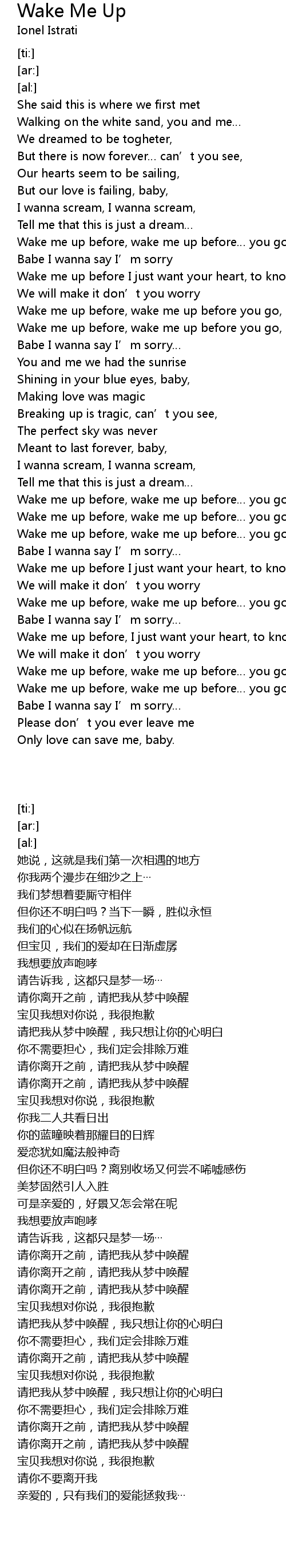 | [03:23.34] | Wake me up before, wake me up before you go, |