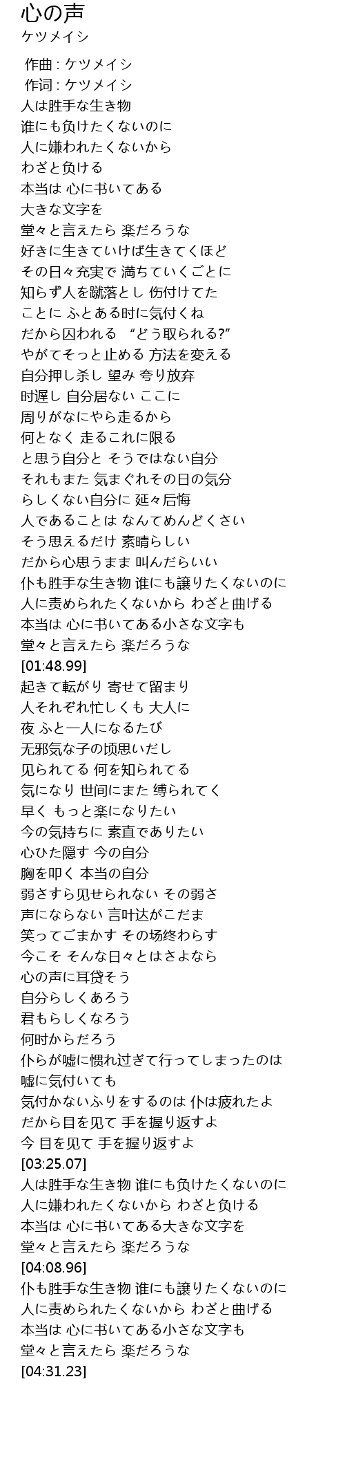 | [03:54.69] | 人に嫌われたくないから わざと负ける |
