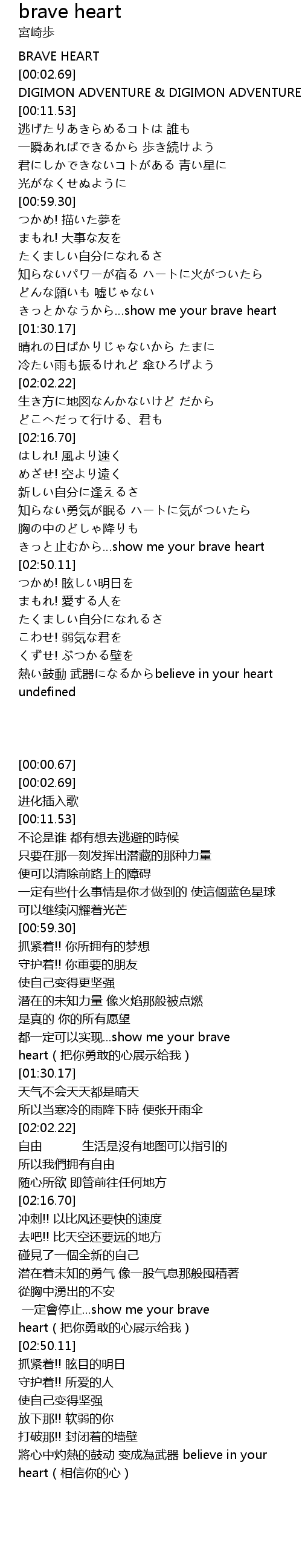 | [00:00.67] | BRAVE HEART |