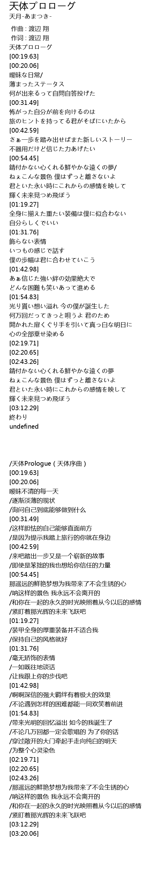 | [00:00.18] | 天体プロローグ |