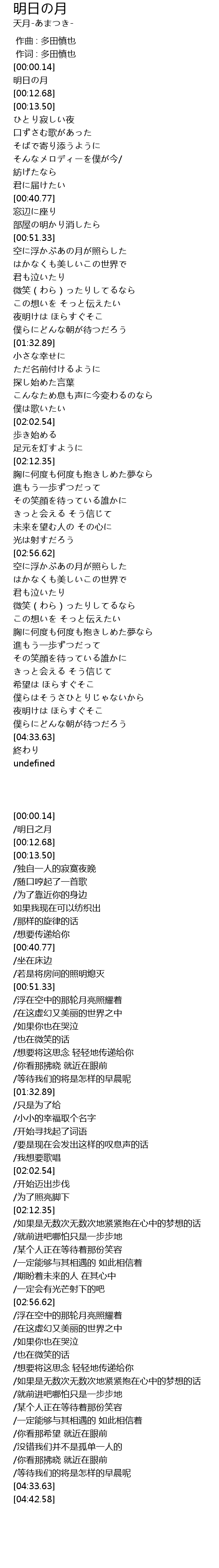 | [00:01.02] | 明日の月 |