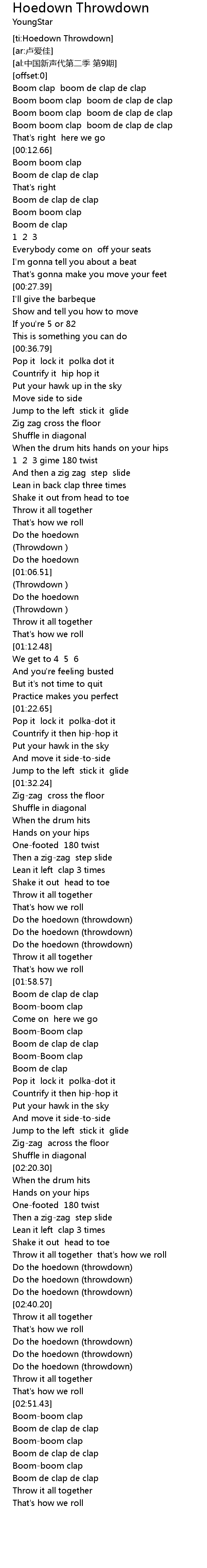 | [02:38.25] | Do the hoedown (throwdown) |