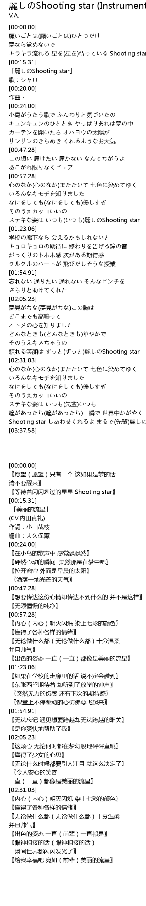 | [00:16.00] | 「麗しのShooting star」 |
