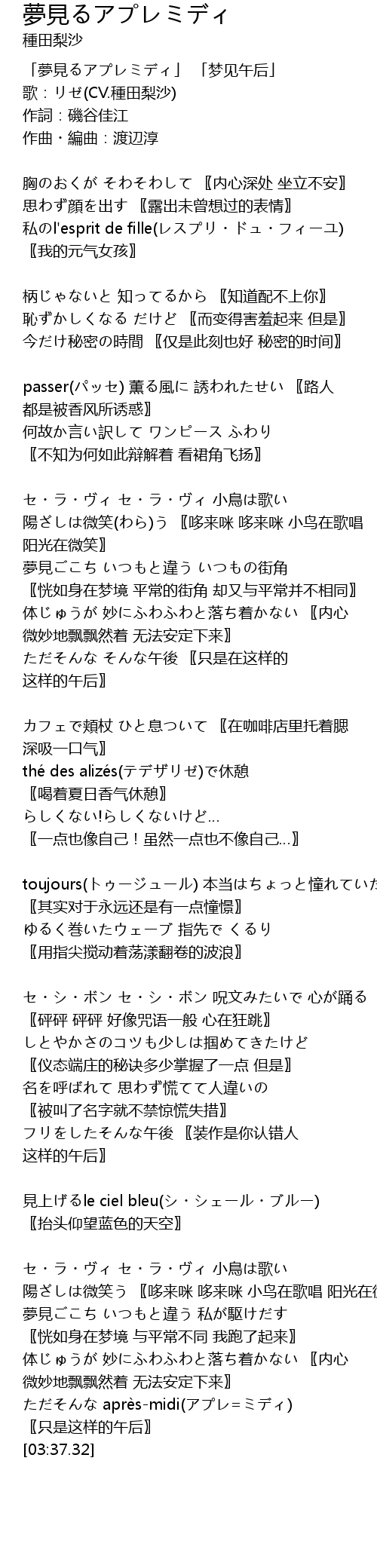 | [[00:00.00] | 「夢見るアプレミディ」 「梦见午后」 |