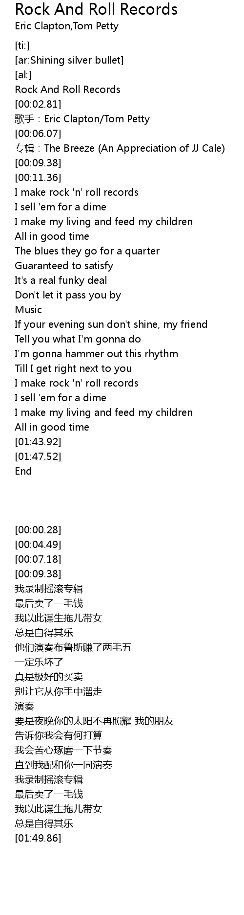| [00:04.49] | gē shǒu: Eric Clapton Tom Petty |