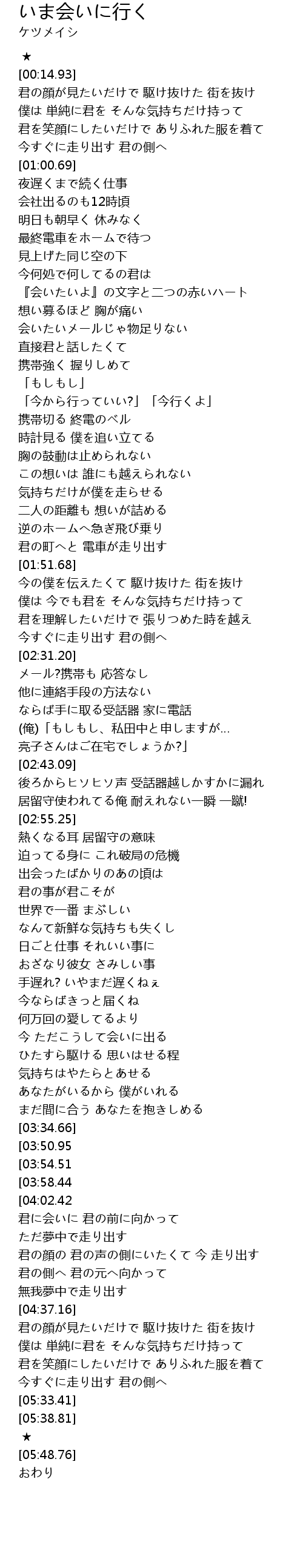 | [04:22.66] | 君に会いに 君の前に向かって |