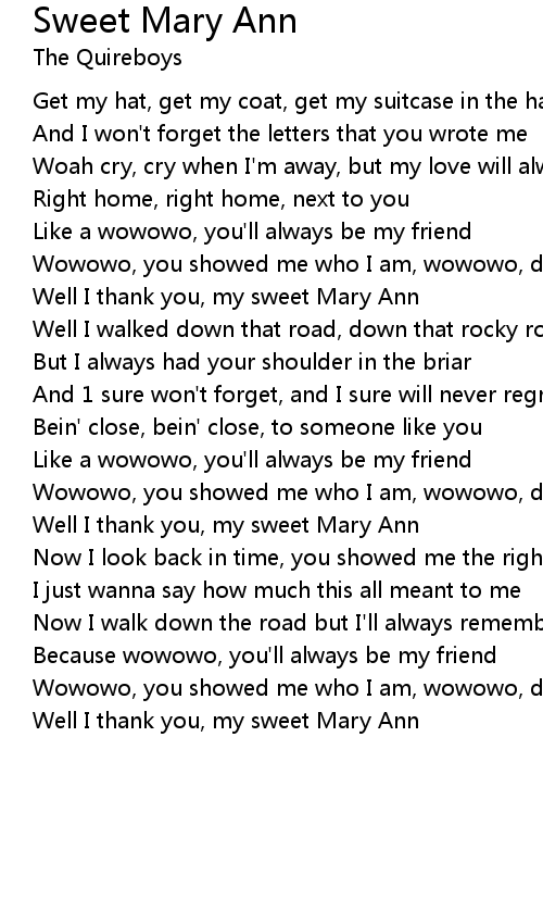 Well I thank you, my sweet Mary Ann |