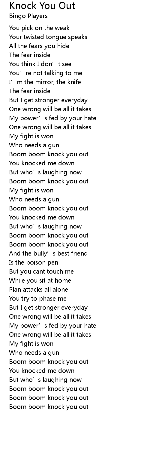 | Boom boom knock you out |