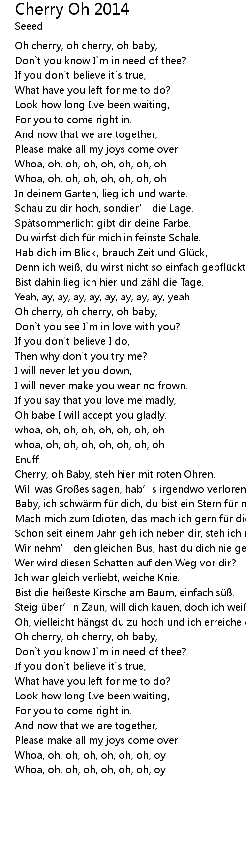 | Oh cherry, oh cherry, oh baby, | |