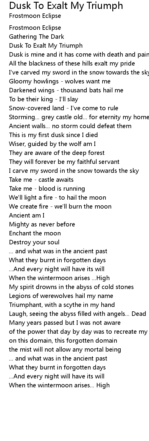 Dusk To Exalt My Triumph |