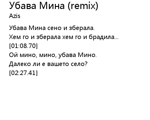 | [01:37.69] | Ой мино, мино, убава Мино. |