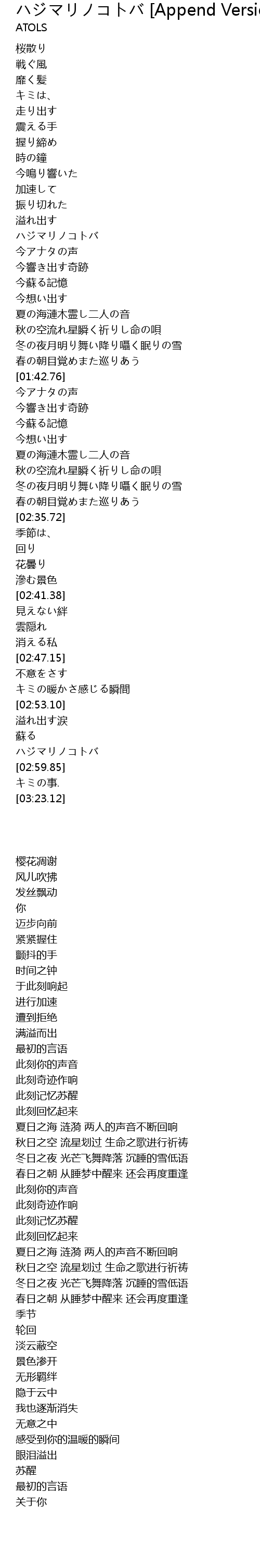 | [01:36.94] | 春の朝目覚めまた巡りあう |