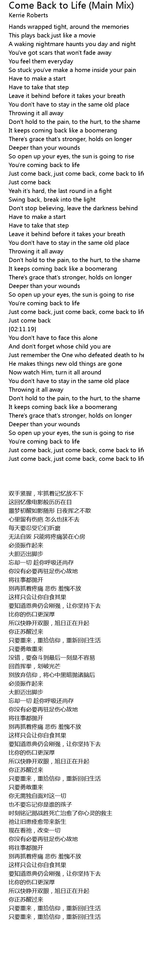 Just come back, just come back, come back to life |