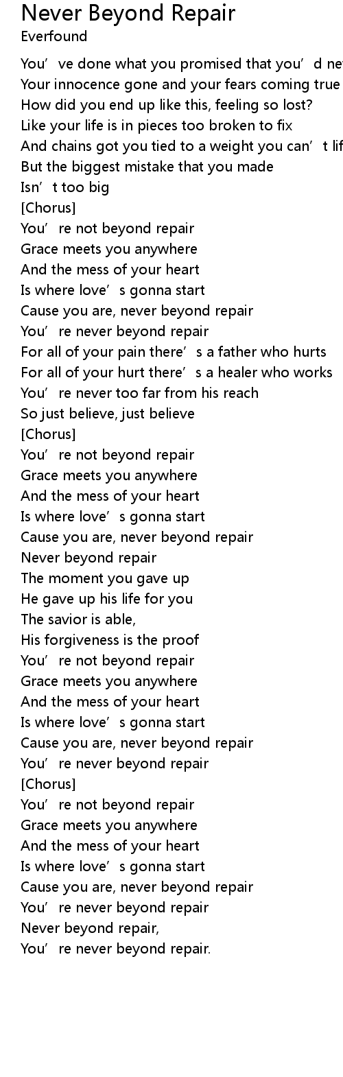 | Album | Never Beyond Repair (Studio Series Performance Track) |
