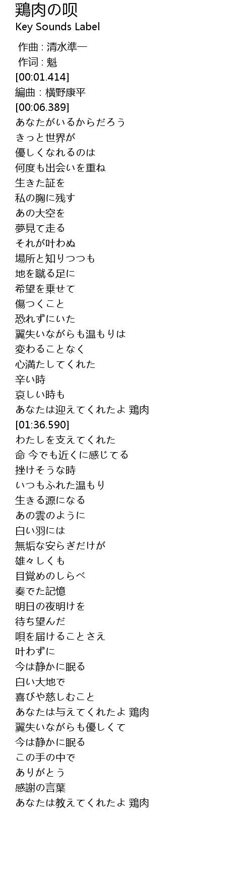 | [01:29.590] | あなたは迎えてくれたよ 鶏肉 |