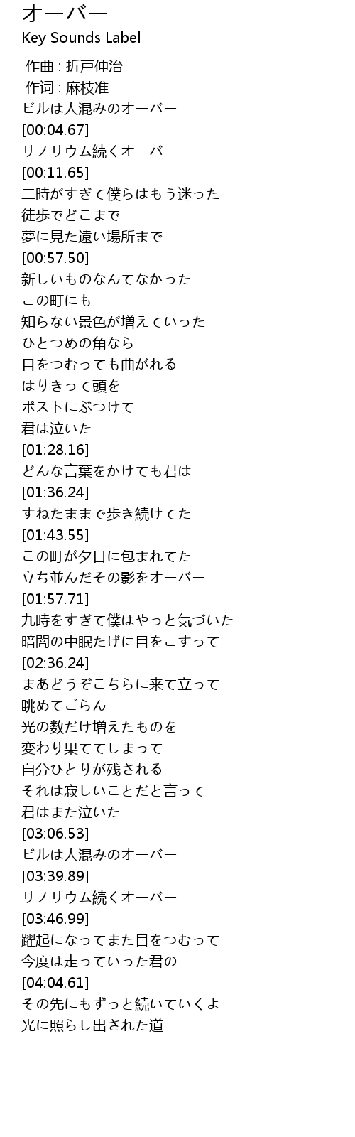 | [01:50.43] | 立ち並んだその影をオーバー |