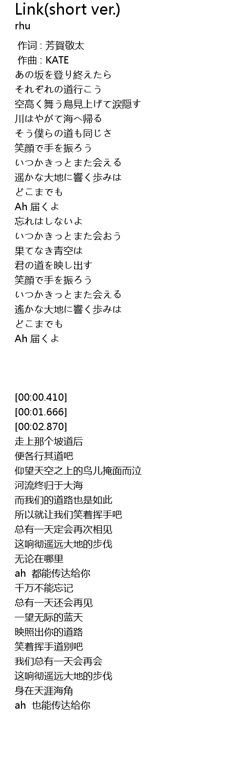 | [00:00.000] | 作词 : 芳賀敬太 |