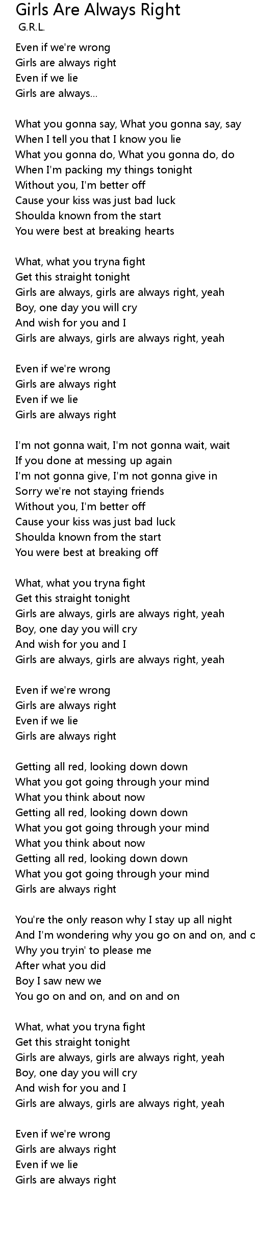 | Girls are always, girls are always right, yeah | |