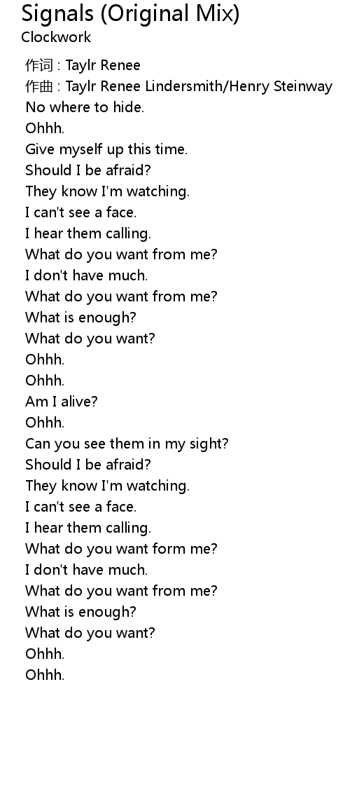 | [00:01.000] | zuo qu : Taylr Renee Lindersmith Henry Steinway |