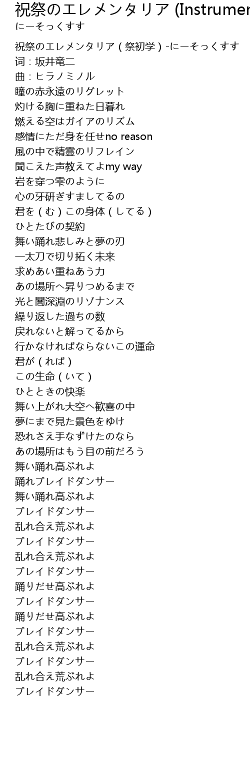 | [00:00.00] | 祝祭のエレメンタリア(祭初学)-にーそっくすす |