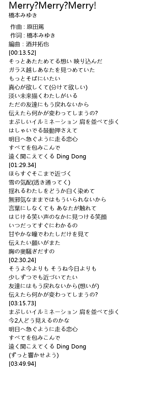 | [03:38.77] | 遠く聞こえてくる Ding Dong |