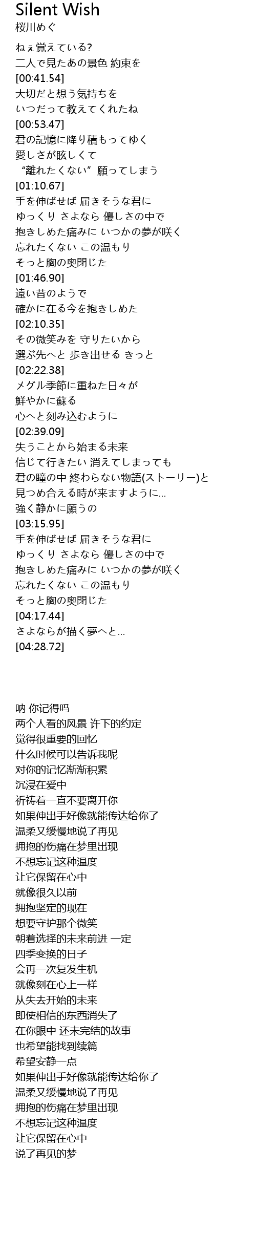 | [02:22.69] | メグル季節に重ねた日々が |